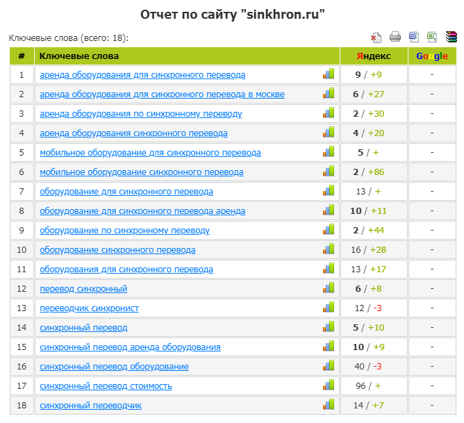 - В пакет включен развернутый ежемесячный отчет по движению позиций, а также подробное описание произведенных работ, с объяснением зачем это нужно.